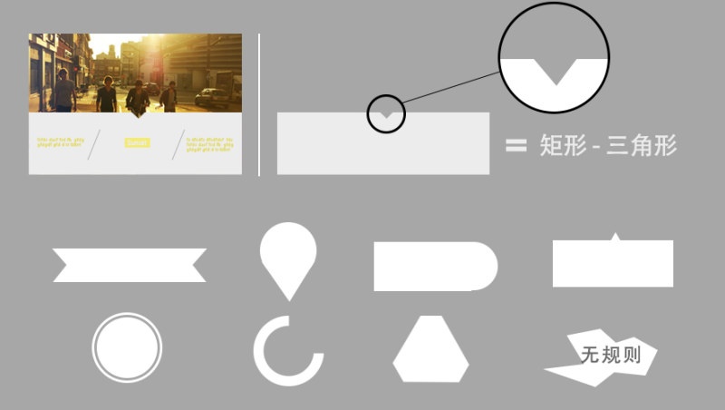 除了基礎(chǔ)的形狀之外,你可以由基礎(chǔ)形狀衍生出更多的組合形狀。但是我建議不要超過三種不同的基礎(chǔ)形狀組合,這樣會讓你的設(shè)計脫離扁平化簡約的初衷。